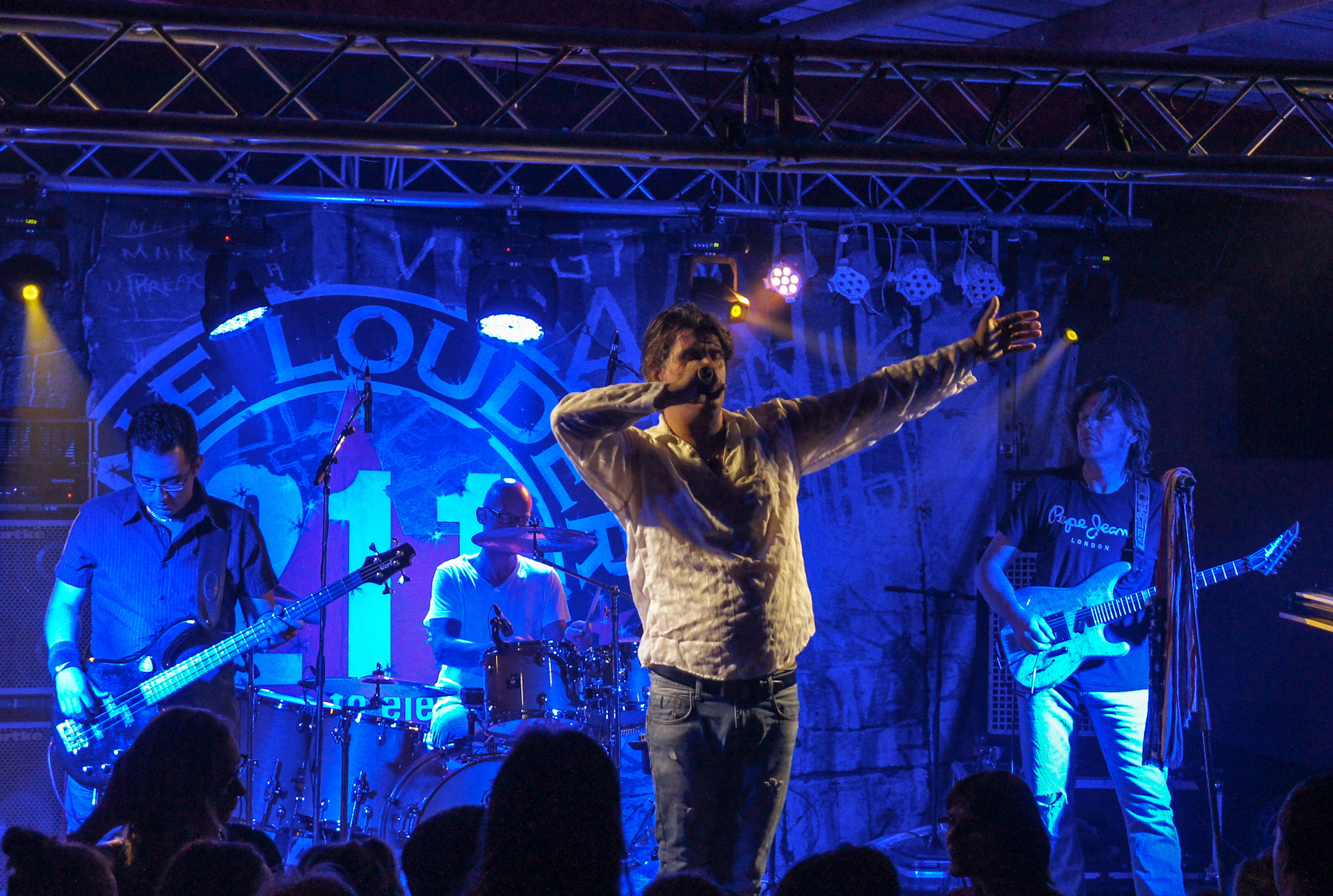 HardRock: AC/DC, Deep Purple, Black Sabbath, Metallica,.... PopRock: David Bowie, Robbie Williams, Manfred Man,... GlamRock: Guns´N´Roses, KISS, Whitesnake, Billy Idol,.... BluesRock: Gary Moore, JJ Cale, Eric Clapton, Jimi Hendrix,.... Alternative Rock: Pearl Jam, 3 Doors down, Green Day, Gun,.... DeutschRock: BAP, Westernhagen, Sportfreunde Stiller, Die Ärzte, Die Toten Hosen,.... ModernRock: Foo Fighters, Volbeat, Blink 182,.... und sehr viele mehr! Dabei bietet ONE LOUDER neben den ganz großen Hits auch immer wieder Titeln der zweiten Reihe Platz, damit dem Publikum nicht nur die allzu bekannten Lieder präsentiert werden. Die Band spielt das großartige „Sympathy for the devil“ der Rolling Stones, nicht das abgenudelte „Satisfaction“. Man bekommt endlich mal wieder den ersten Überhit von AC/DC, „Whole lotta Rosie“ zu hören, als zum hundertsten Mal „Highway to Hell“ Die Rhythmusgruppe, bestehend aus Bassmann Timo Kruschel und Julian Ludolf, schiebt die Band aus dem Hintergrund zu Höchstleistungen an. Am vorderen Bühnenrand sind Frontmann Markus Büch und Leadgitarrist Gero Wessel anzutreffen, die für Stimmung und fliegende Haare beim Publikum sorgen. Daneben bedient Peter Gotza die Keyboards und eine weitere Leadgitarre. Der Name ONE LOUDER ist aus dem Musikfilm "Spinal Tap" entlehnt, in dem die Verstärker einer Rockband bis zur "11" anstelle der üblichen "10" auf der Lautstärkeskala stehen. Die Band setzt also im Vergleich immer "eins drauf". Und so stehen ONE LOUDER in jeder Hinsicht für mehr Stimmung, mehr Spielfreude und mehr Show. Und der Begriff "one louder" hat es auch in das englische Wörterbuch geschafft und steht dort für "stets besser" oder "eins besser".